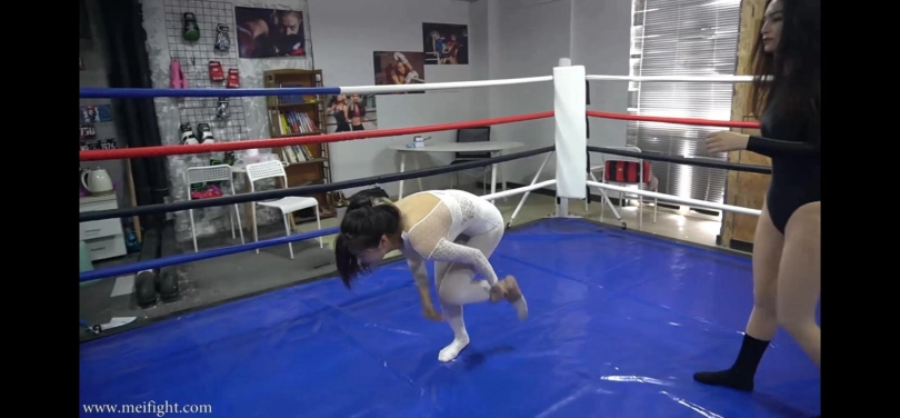 两个美女大战,互相蹂躏对方,摆出各种羞耻姿势,最终白袜制服美女负伤落败,痛苦不堪。