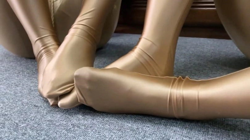 没法用手的她们只能用脚试着解缚,但这紧身衣的脚部太滑,试了几次根本没法用,她们想脱下紧身衣,研究了一下紧身衣开口在后背是一体的,根本没法脱下,她们互相摩擦双脚想弄破紧身衣的脚部但衣服意外的结实根本弄不破。