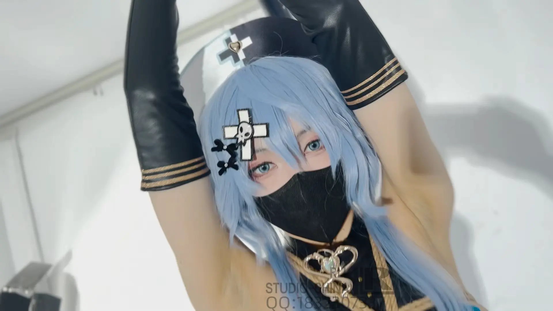 先把手吊起来站立开腿拘束,再放到椅子上强制M腿振动放置~喜欢皮袜和乳贴的老板不要错过哦~