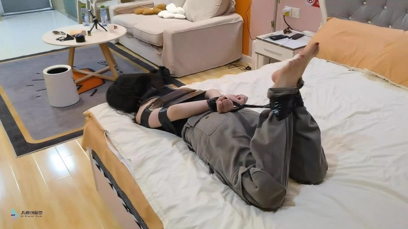 美女在家中休息,闯入一名匪徒将女主用胶带捆绑起来,并口球塞住她的嘴巴。脱下女孩的袜子逼问银行卡密码。走之前将女孩驷马加固捆绑。在劫匪离开后,女孩挣脱束缚并报警。