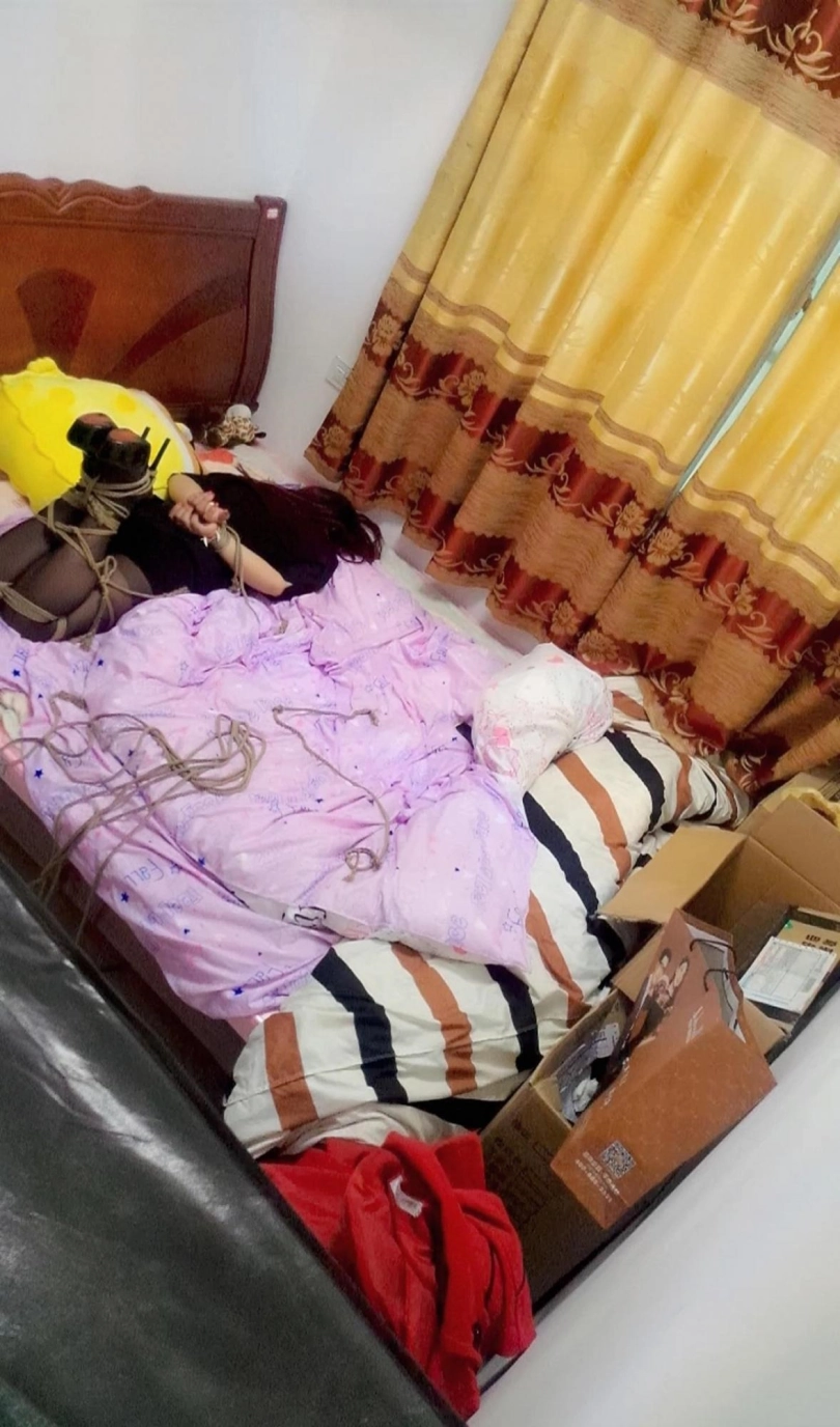 在洗脚城洗脸的时候通过聊天认识的一个洗脚妹,开了几次玩笑过后,发现可以下手,于是多次回头照顾生意之后便有了相互的好感,时机成熟过后,终于有机会去她住的地方,,由于多次开玩笑的说要把她绑去卖了她都只是一笑而过,决定迅速的实施这次计划,悄悄的带上了绳子,到了她住的地方,还没来得及等她反应过来,连工公司要求的制服黑丝高跟都没有换就把她的双手迅速绑了起来,先发制人还是有好处的,手绑好之后她没有了多余的反抗能力,于是开始扔到床上全身捆绑,成功过后,她有点害怕,开始破口大骂,于是堵上嘴后,开始观察她住的房间,确实有点小,由于从来没有被这样捆绑过的她也只能一直挣扎,,,经过安抚和交流让她信任不会伤害她之后,终于放下了戒备,开始一系列捆绑调教,,,第二天晚上还是很不情愿的关上了第二套工作服,继续,由于调教过猛,又开始破口大骂,带上狗骨头口球之后,口水papa的流,从来没有这样的羞耻感让她更是愤怒,只能捆在哪里给她放了几部动画片让她适应,确实是一个不太好开发出来的妹子,不过最真实的素人捆绑确实更令人兴奋!!!