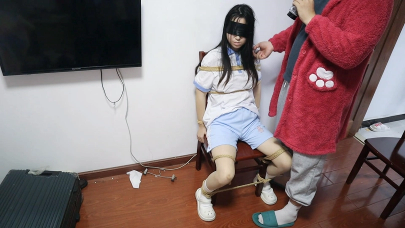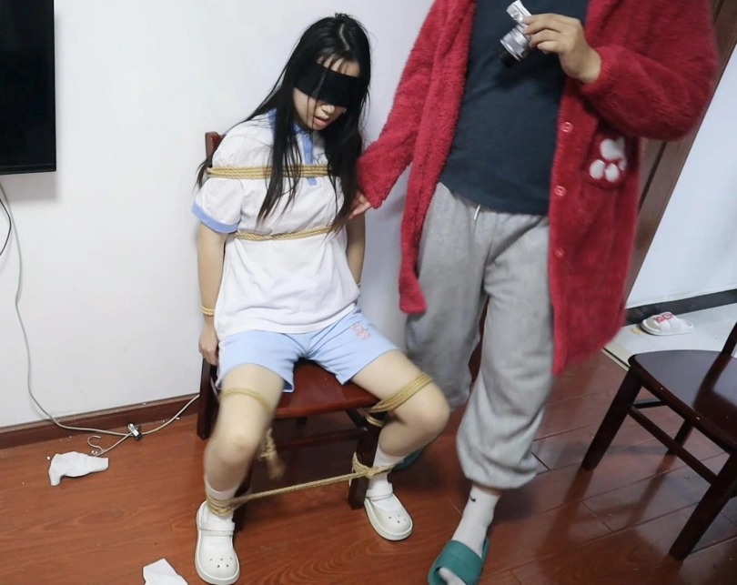 【荷仙少女】少女I的痛苦呻吟 牢牢的被绑在椅子上动弹不得,下面有玩具帮助 ,少女I(爱颖)被搞的一直娇喘不停,一脚踩下去娇喘更大了期间主人又各种玩弄骚扰 tk鞭叫的更大声了