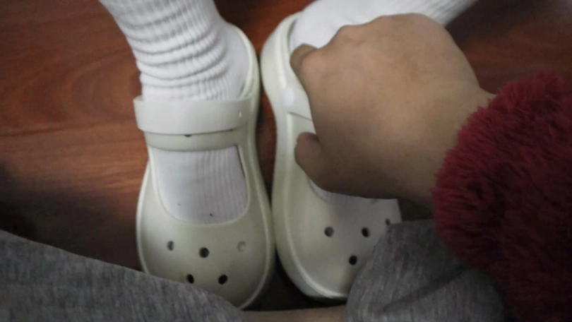 啊啊啊啊的叫不停, 把鞋子脱了继续玩脚不停