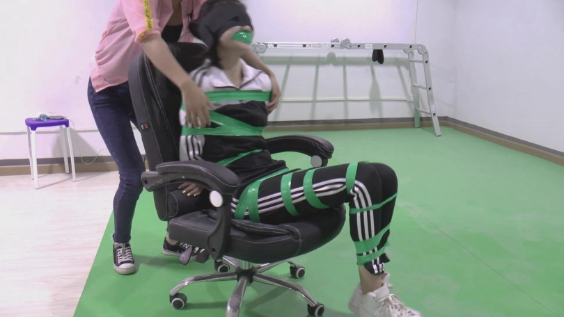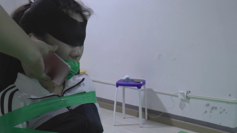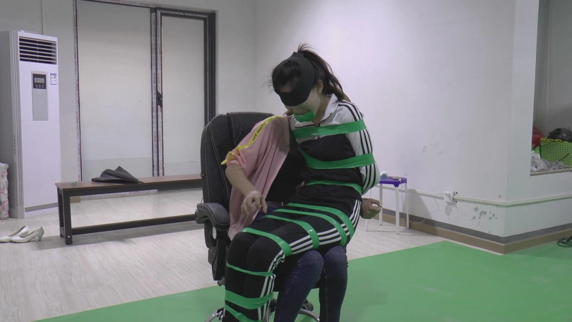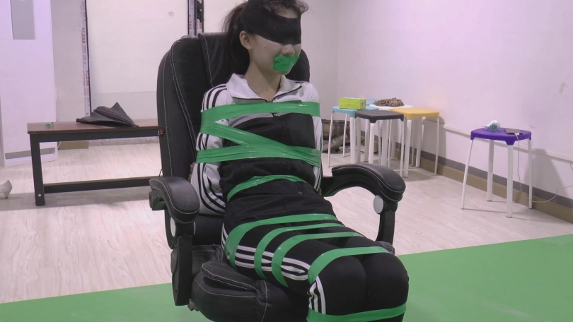 让小雨的所有声音都变成了呜呜呜...接着用胶带捆绑起来。手腕、小腿、大腿,为了防止小雨剧烈挣扎,在小雨的