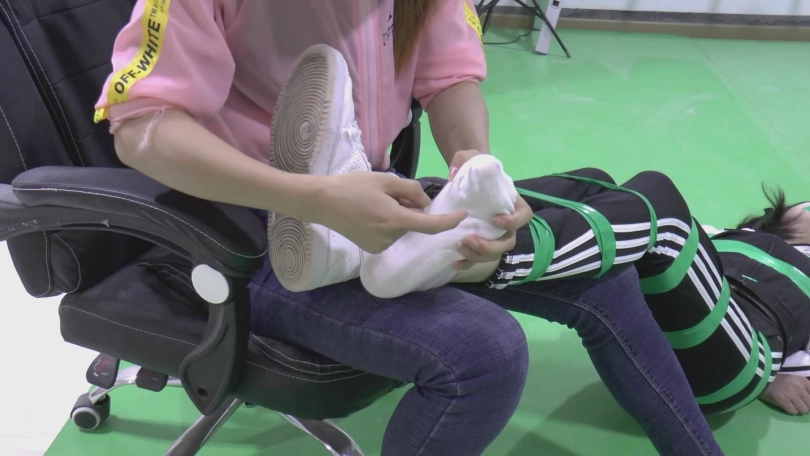 人用袜子塞住了小文的嘴,袜子不带,但是正好塞住了口腔,不至于很鼓。