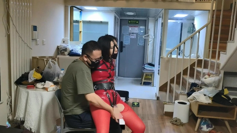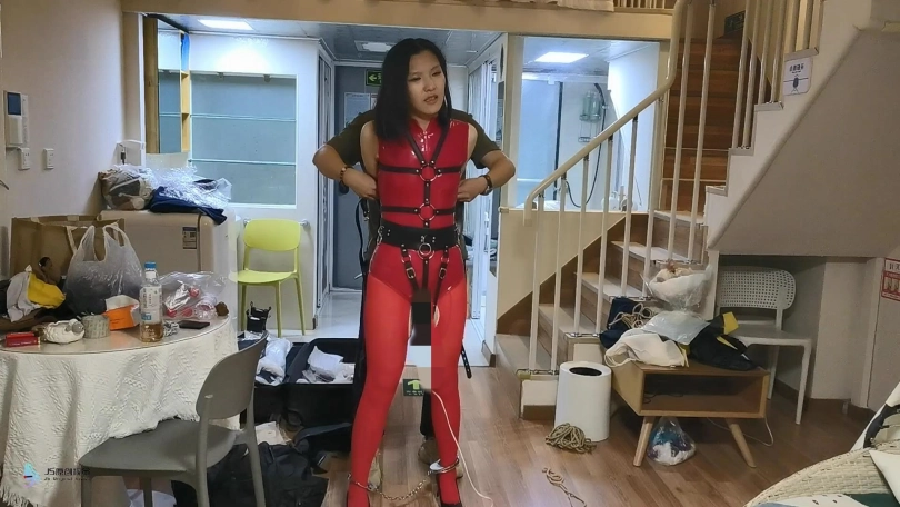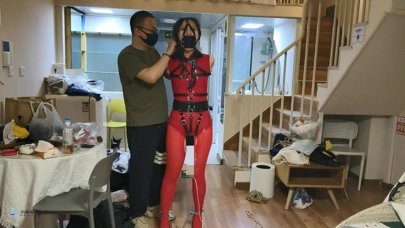 【JS】【欢娜】《红与黑》皮革束缚马具型口塞蒙眼脚铐棒棒刺激