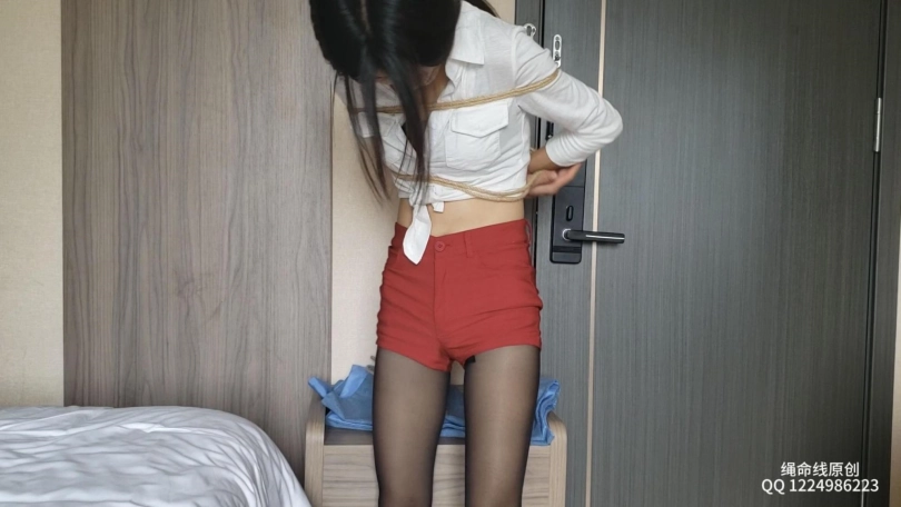 安琪男朋友走了之后,叫她换了套服装,穿上黑丝绑了个日式M腿,看起来还是挺诱惑的,绳师电话来了,只能让她自己在房间里挣扎脱缚,最终绳师回来了,绳子还有一点点没解开,哈哈哈!