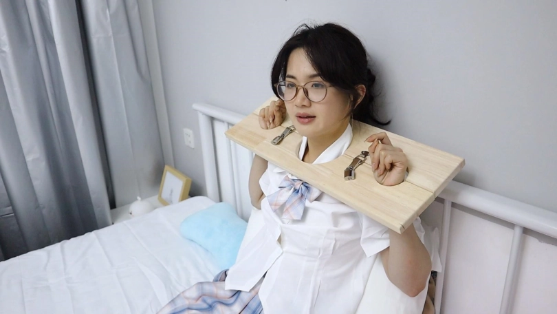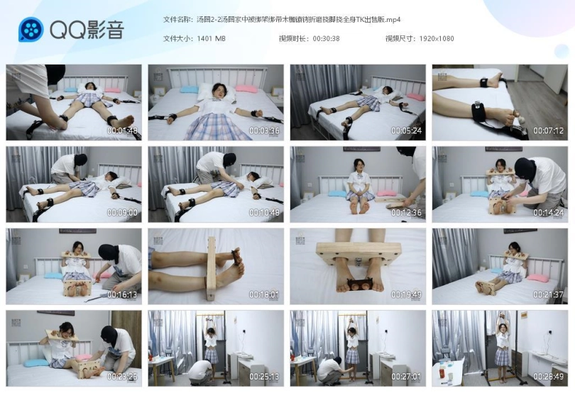 【趾间艺束】萌妹子汤圆家中被绑架 绑带 木枷 吊铐折磨 挠脚挠全身TK 手铐脚铐脚趾铐
