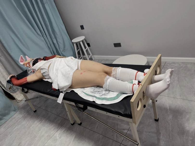 糖糖实在太怕痒了!!!被挠脚底就用两只白丝小脚互相遮掩,于是我就把双脚分开固定,让两只脚底无法互相遮挡。挠腋下的时候一直用手抓我的裤脚企图能延缓我的挠痒,但这一切都是徒劳的~有一次甚至把手腕从皮铐中挣脱出来了,不过没关系,我会狠狠压住她的手腕,把皮革手铐收到最紧,无论怎么挣扎都是徒劳的,糖糖拼命恐惧求饶“太紧了太紧了”..视频为证,糖糖挣扎到固定刑床的螺丝都脱落了!!!!