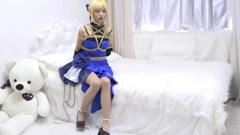 › 【逍遥】【cosplay】礼服saber 项圈背铐,分腿棍,全身捆绑