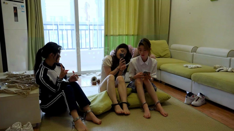 三人以上一关排名为顺序,分别在口球,扎带(三根)和高跟鞋中选择一样属于自己的道具。选择完毕后,三人跪好,将手铐改为背铐。