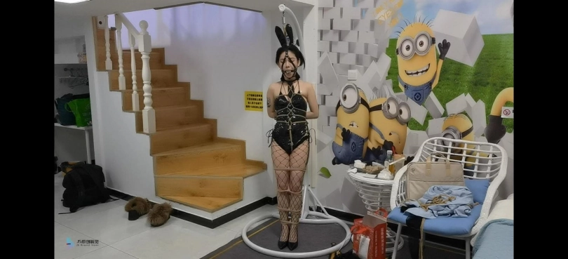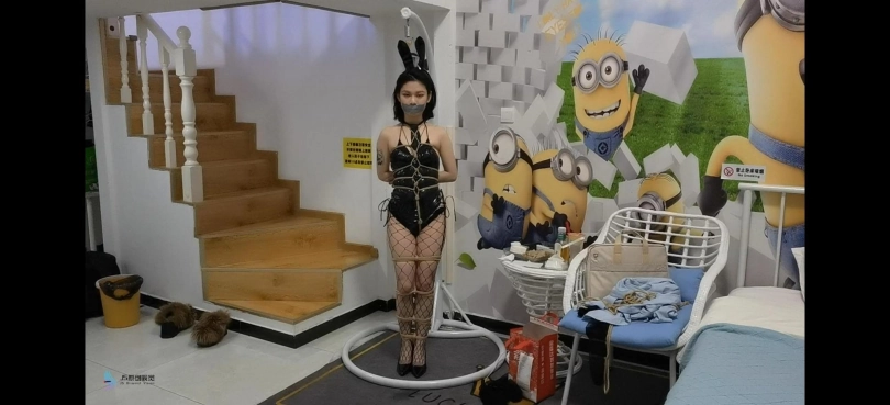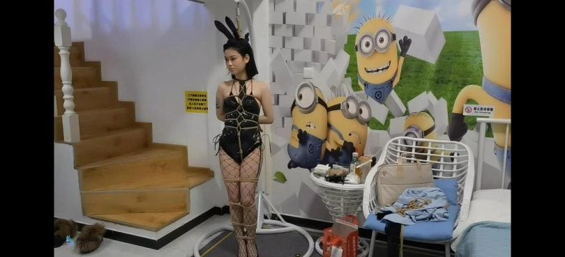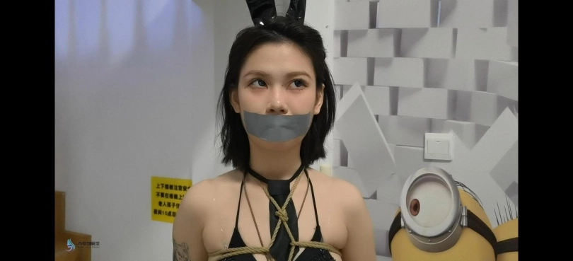 › 【JS】夏瑾性感兔女郎渔网袜高跟鞋站立龟甲缚多种胶带封嘴柠檬口球流口水