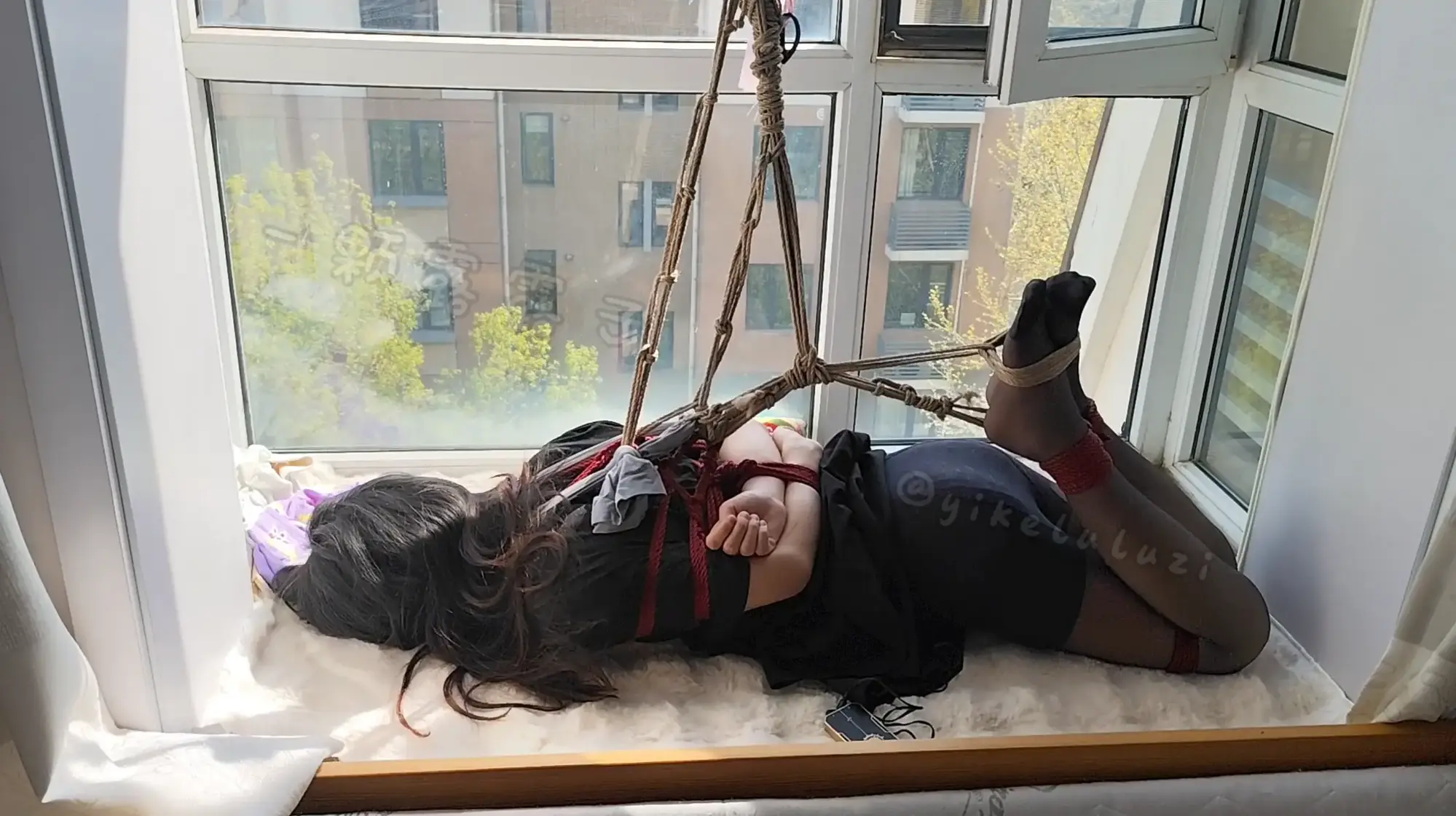 嘴里的棉袜自己穿过又臭又脏,被一条裤袜勒住嘴巴,低头会被直接顶到嗓子眼极其折磨。窗边,一个只能挣扎的黑色娃娃,用力的挣扎着却无济于事……