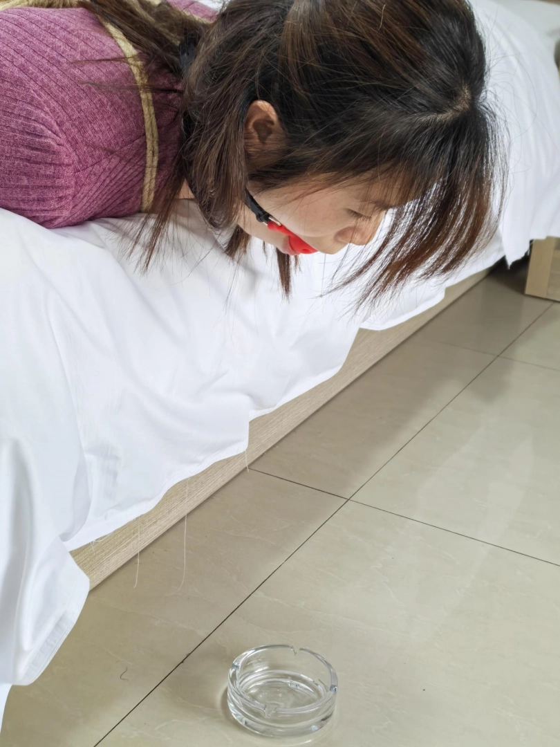 给人妻文文整了个驷马口水收集,绑好之后直接让她口水流烟灰缸里,然后就出门抽烟聊天,给她自己在床上挣扎流口水,流了半缸口水挺不错,看着都有点搭小帐篷。