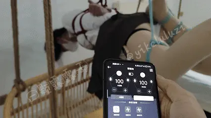 露露白天穿了一天的棉袜被无情塞进嘴里后被马具口塞堵住无法吐出,眼睛被蒙享受坐在吊椅上荡秋千的感觉。