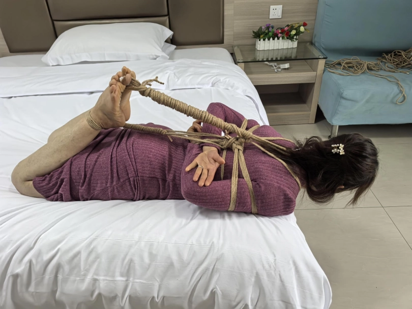 绑好之后直接让她口水流烟灰缸里,然后就出门抽烟聊天,给她自己在床上挣扎流口水,流了半缸口水挺不错,看着都有点搭小帐篷。