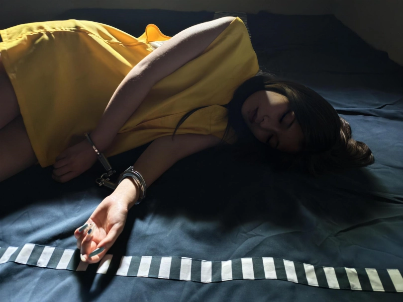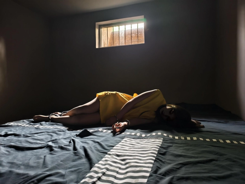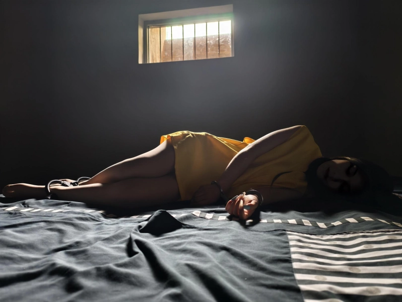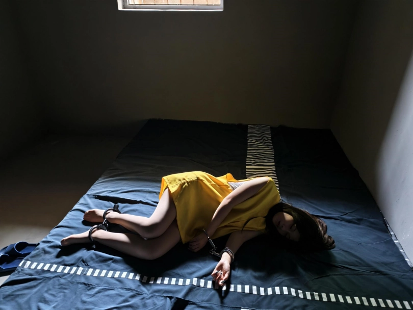 【忘忧社】模特小涵出演女犯本系列第四部,四女囚系列之拐卖儿童张倩被抓捕,一开始她拒不交代,被帽子姐姐铐起来脚尖着地,终于承受不住,手铐脚镣,审讯,放风,高颜值模特倾情演绎