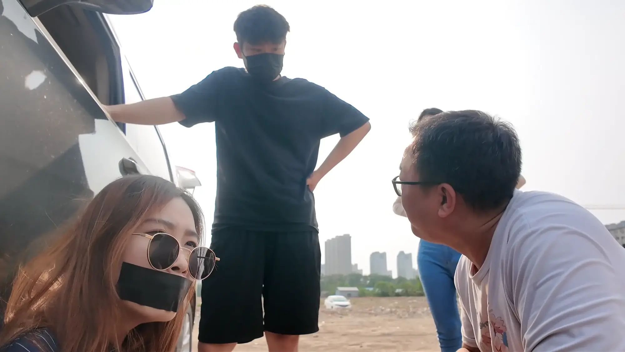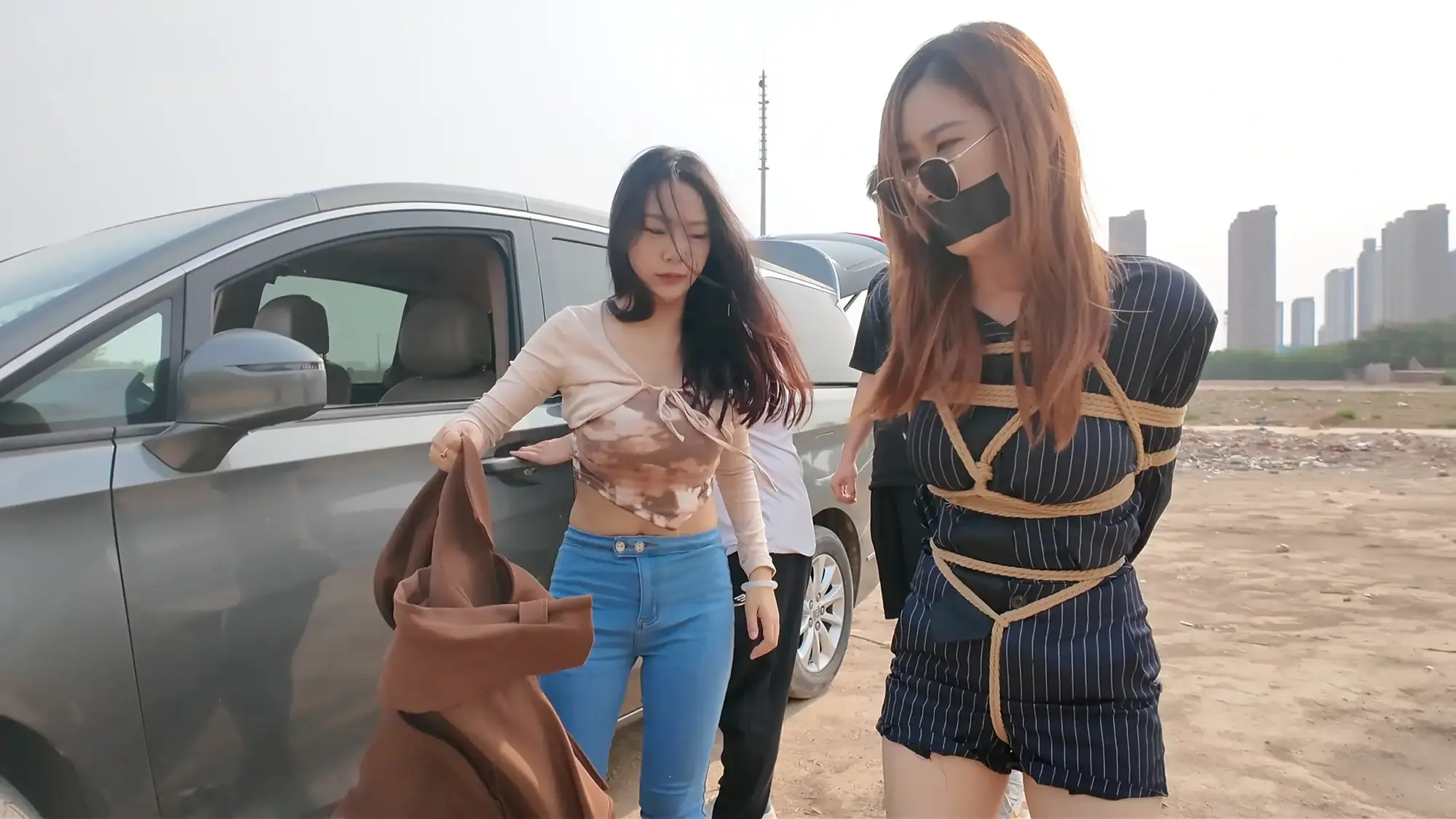 半路中,南清苏醒开始呻吟挣扎,躺在后备箱睡着的雷姐被吵醒,正当准备教训南清的时候,车忽然急刹,雷姐训斥小弟得知是汽车爆胎泄气,三人无奈只好暂时原地休息,两位小弟见南清肤白貌美起了歹心,突然雷姐背后拉开了两人,命令他们什么也不许做,赶紧想办法把车修好。两位小弟很不情愿的蹲在一边抽烟,雷姐开始挑逗南清,表示她这么极品的“货物”可不能让那两个废物小弟糟蹋了,想起卖掉南清后马上就能名利双收,雷姐大笑了起来,一旁的小弟敢怒不敢言,只能偷摸的骂雷姐泄愤。
