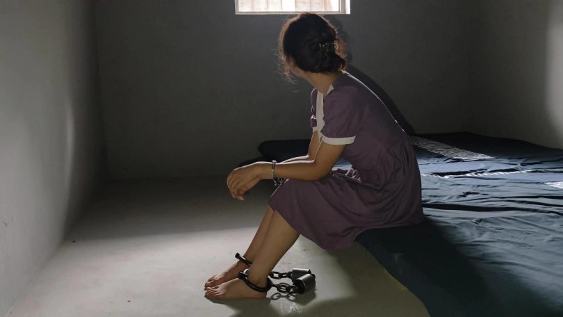 查看完整版本: 【忘忧社】新模特以墨因受不了上司长期骚扰,失手杀了人,被抓回来后拒不交代,被带工字铐,关小黑屋,后来终于受不了坦白从宽,换上了码法脚镣。