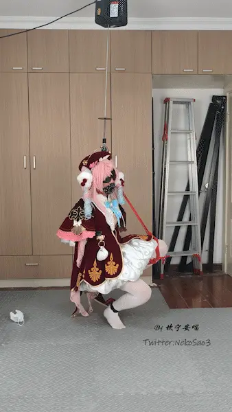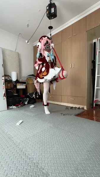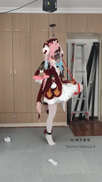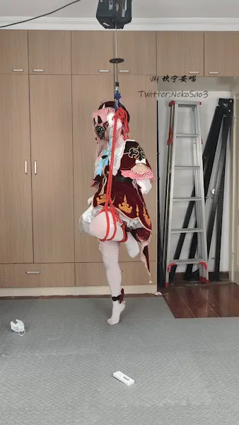 [有求必应的风菫这回收到了一个奇怪的请求——对方希望风菫能够以特定的姿势把自己绑起来,同时录下整个过程。既然是有求必应,风菫也只好勉为其难的答应了,毕竟她自己也十分好奇……她遵照指示把一条腿捆成了折腿,然后用一根项圈拷住自己的脖子,连带折腿的绳子固定到了一个吊索上,接着将双手拷在了身后,最后把自己吊了起来,吊索拉扯着她的脖子,让她不得不站起身来,最后只有一只脚能够勉强踮地,当然她也没忘了打开胯下那个奇怪的小道具,根据指示上的说明,这玩意能够带给她“无与伦比的快乐”……]