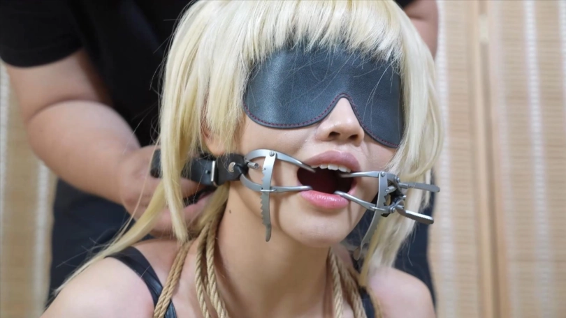 盘腿坐,用绳子绑结实,大脚趾细绳拉紧,嘴巴用开口器撑开,放置口水!
