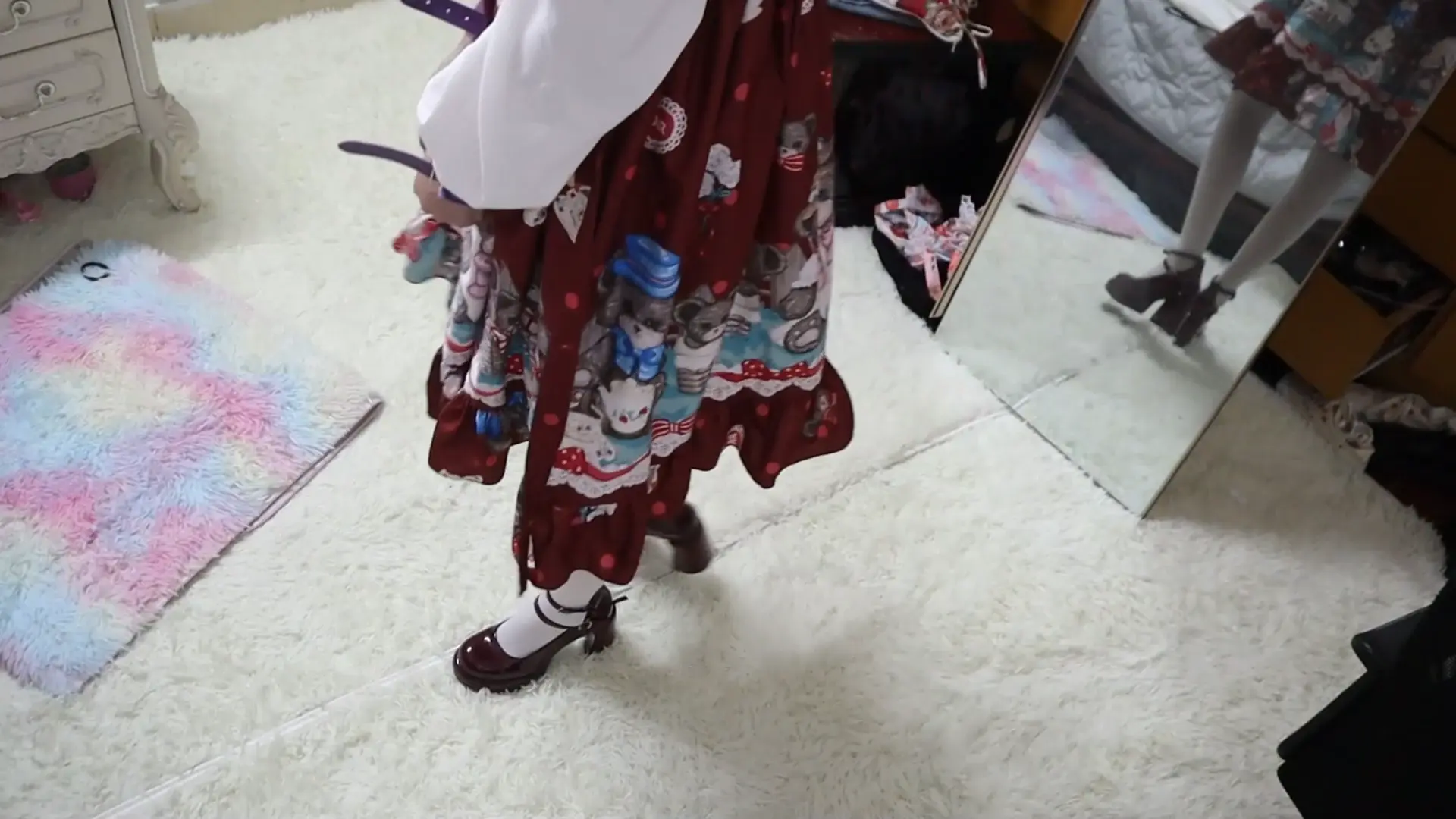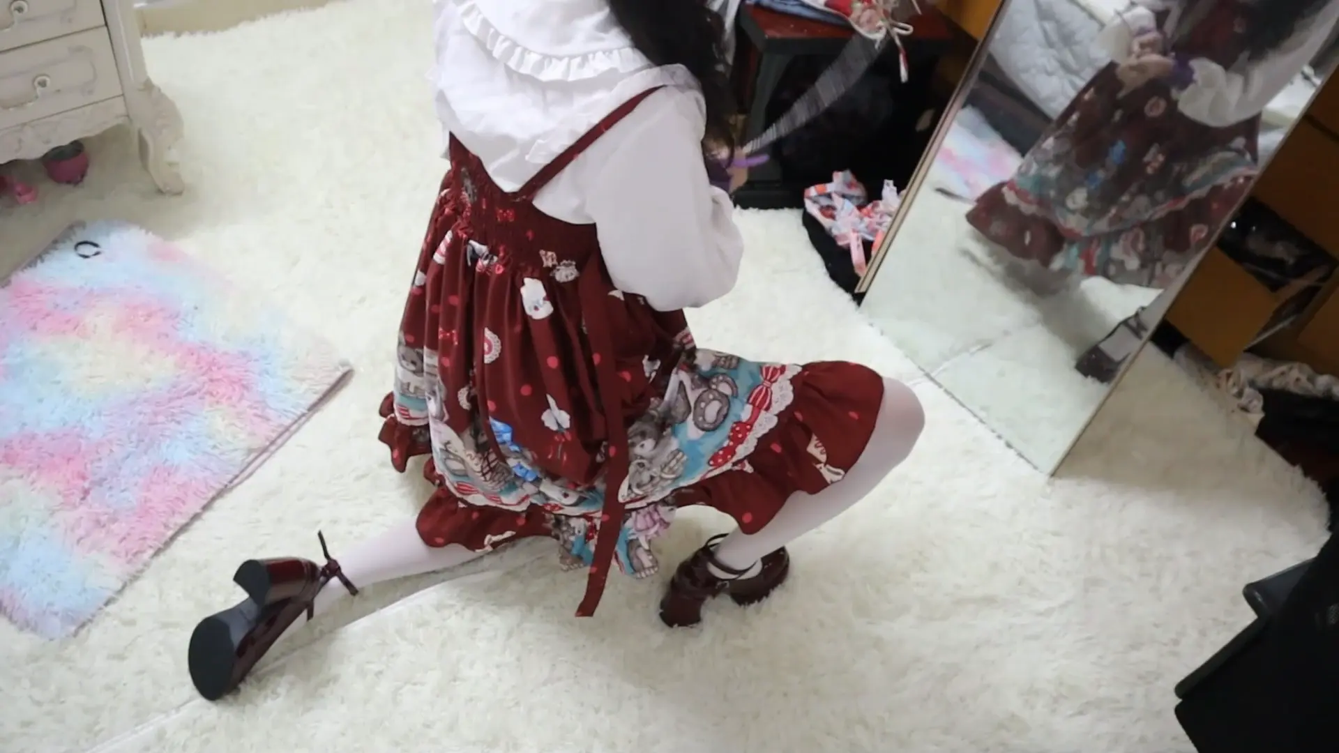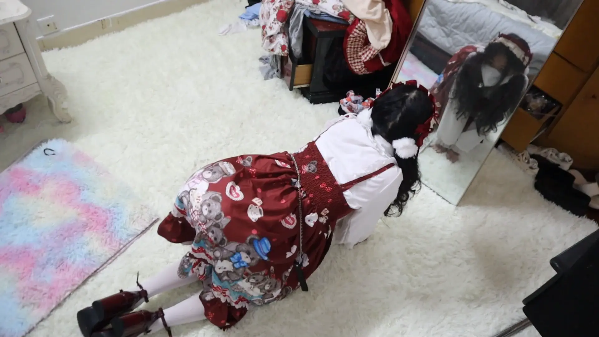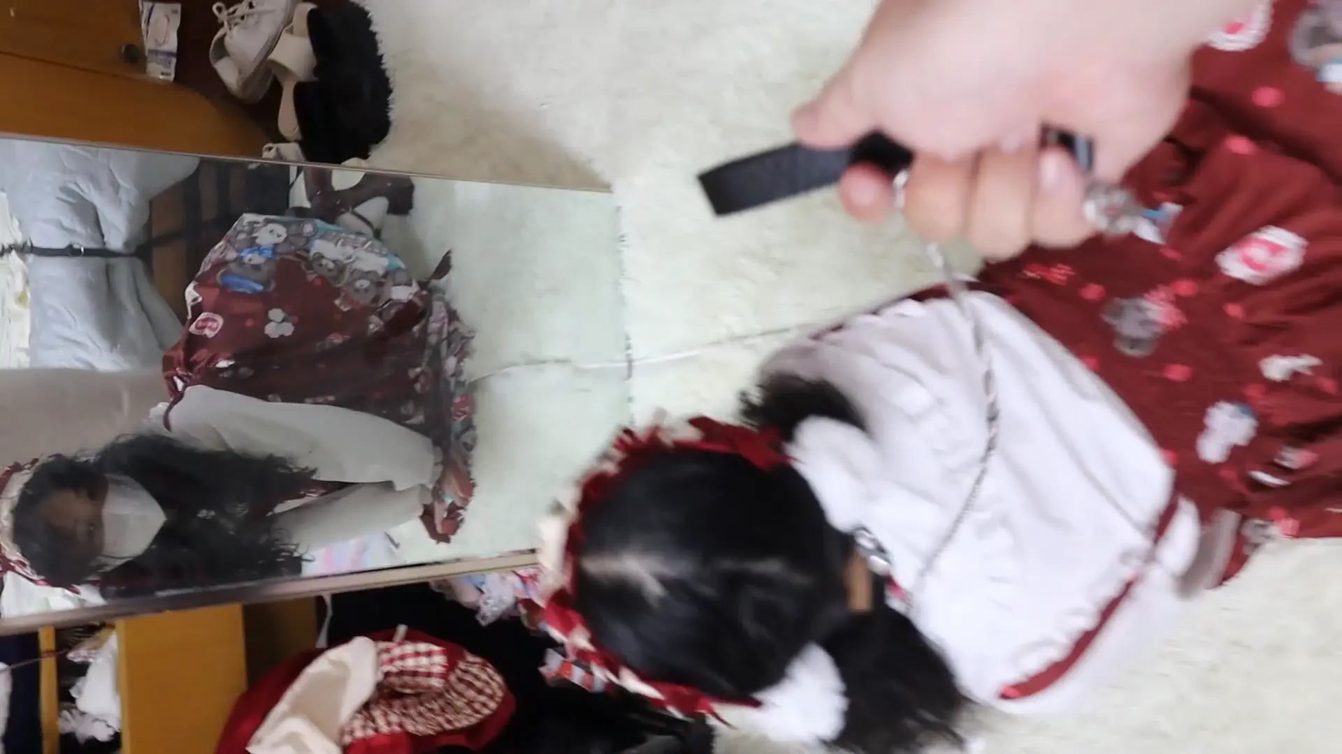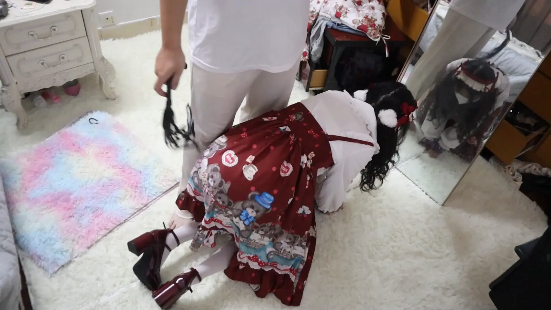 › 【荷仙少女】圈养超大只高挑漂亮洛丽塔白丝少女母狗虞琳,对着镜子跪爬一边害羞一边忍不住想的母狗,手脚被圈住,脖子上带狗链,调教之余掀起裙子被鞭子狠抽呜咽跪爬,一边被虐一边呜呜浪叫,最后虞琳母狗抓着链子自娱自乐