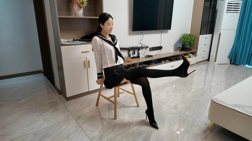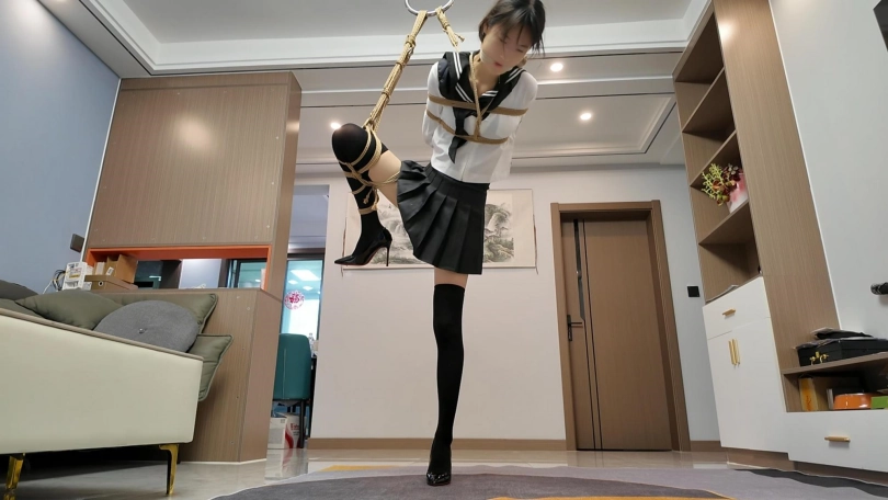 晓倩在家穿上肉丝。外面套上长筒黑丝,不料被早就潜入家里的歹徒捂晕,被驷马捆绑,丝袜堵嘴,丝袜蒙眼...