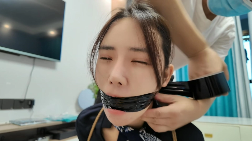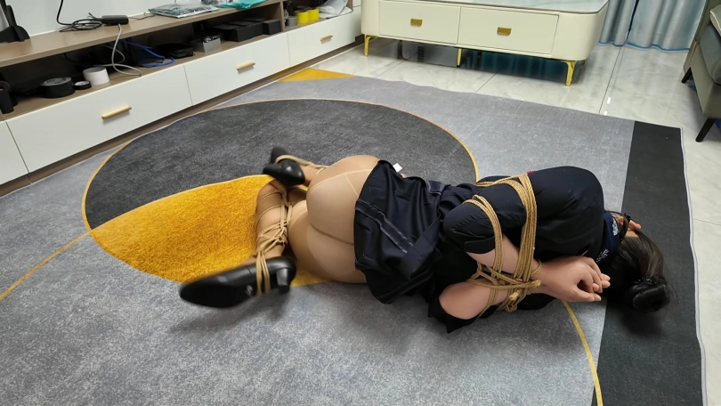 空姐十一被捆绑成后手观音M腿,堵上嘴在地上拼命挣扎,又被提溜到卫生间淋水,绳子遇水更加收紧