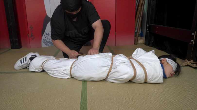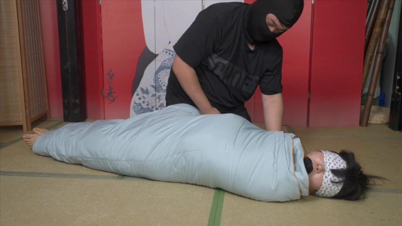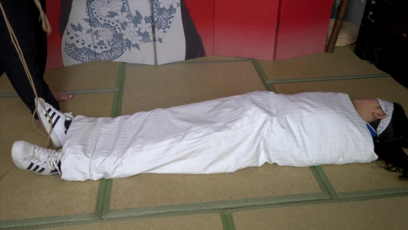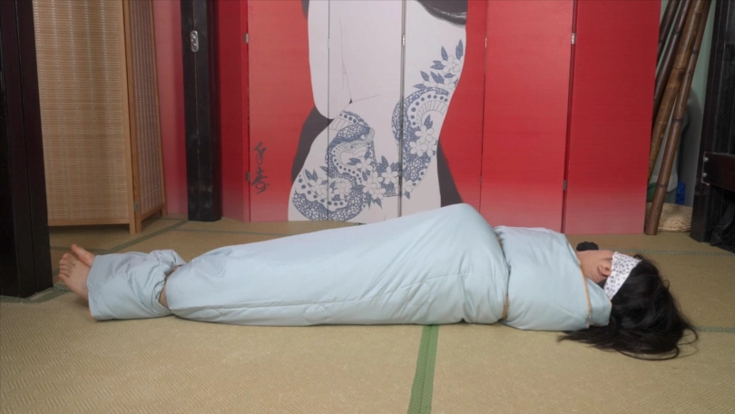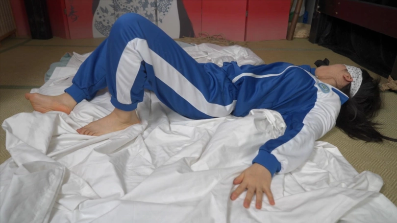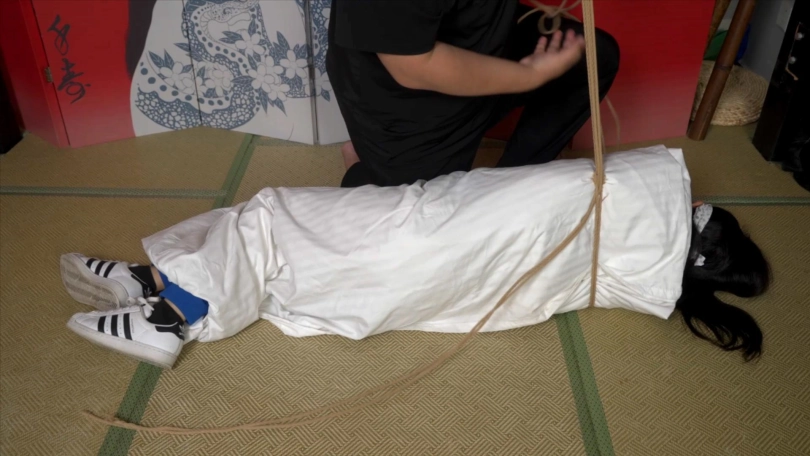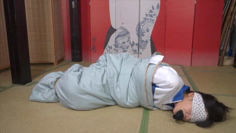高中生小0穿着校服被棉被包裹起来