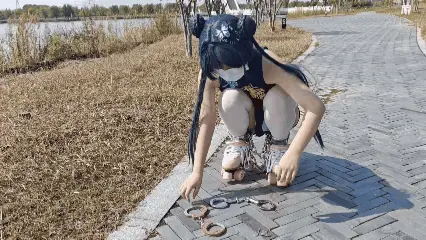 苏苏cos妃咲体验轮滑在公园自由滑行,先是戴着死铐脚镣开始给自己穿上轮滑鞋,接着打开束缚开始在公园开始滑行,滑行到一处亭台附近被戴上了两副手铐和脚镣,艰难的滑到亭子前,被铐在了栏杆上,蒙上眼戴上口球被tk,之后放置一段时间,将钥匙藏在四个地方,门主大人能否找到全部钥匙解开束缚呢......