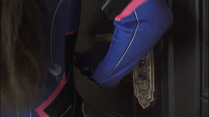 老王走后,黄洁跳到门口,想用手打开门,但是做不到。