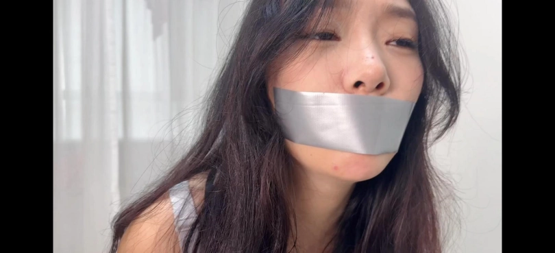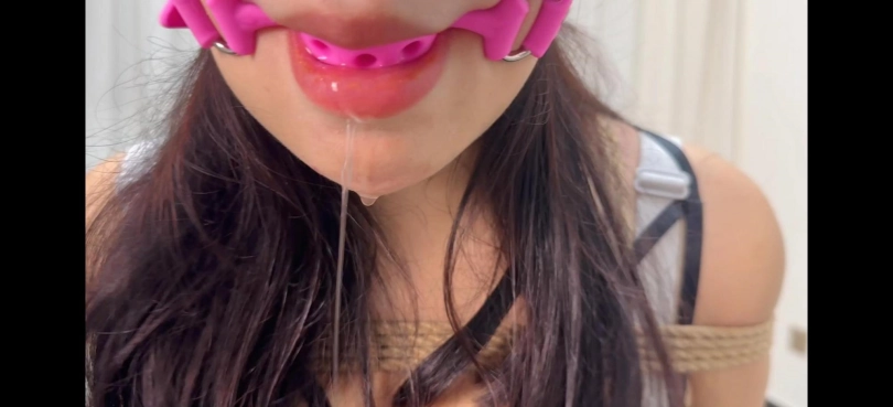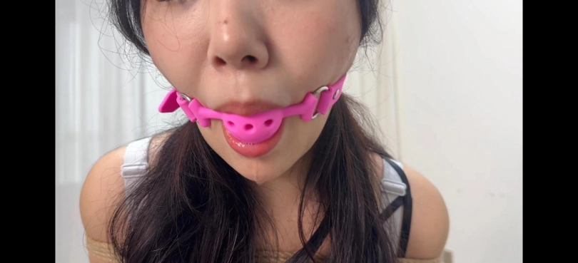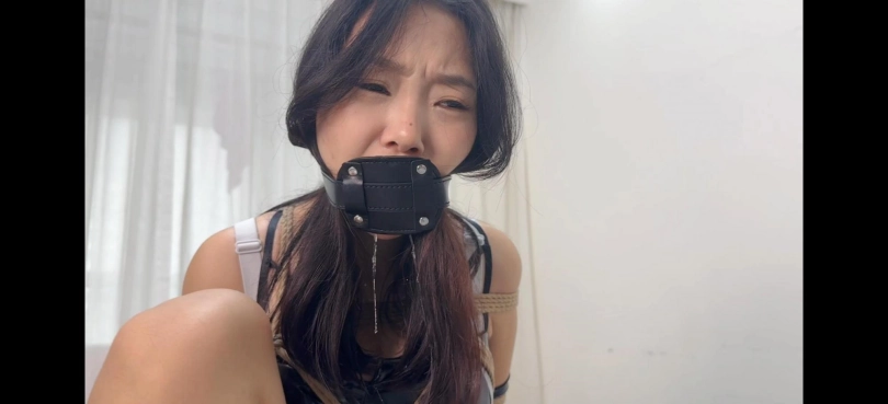 驴驴身穿性感皮裙加红底高跟捆绑放置口球和yj口塞堵嘴流口水,还有透明和银色胶带封嘴,口水很多挣扎也很不错