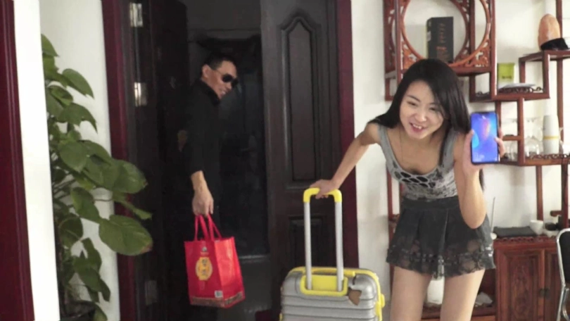 夏炎拉着行李箱和锁哥往屋内走去,梁静继续低头看手机。