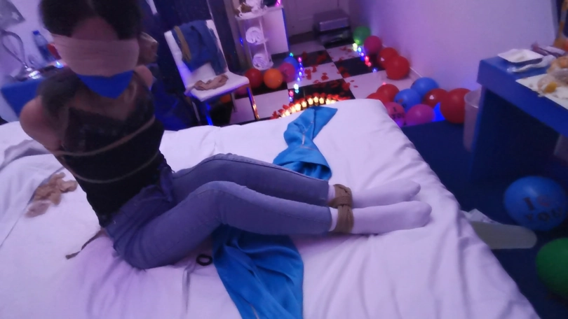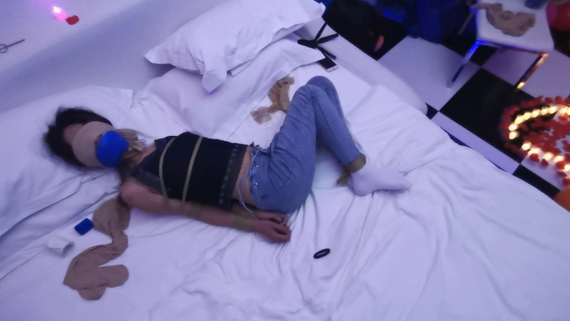 大美女凌薇(林艺)被入室捆绑堵嘴蒙眼,玩弄白袜脚的故事,呜呜挣扎声很诱人。