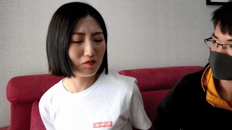 情节:小鱼在家遭遇入室抢劫,劫匪将其双手反绑,脚踝捆绑后给其带上塞口球。