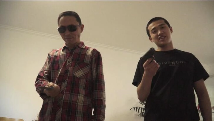 两位美女正在家里玩突然两位劫匪冲了进来 把其中一位美女捆了起来 把另一个美女拿金属禁锢了起来