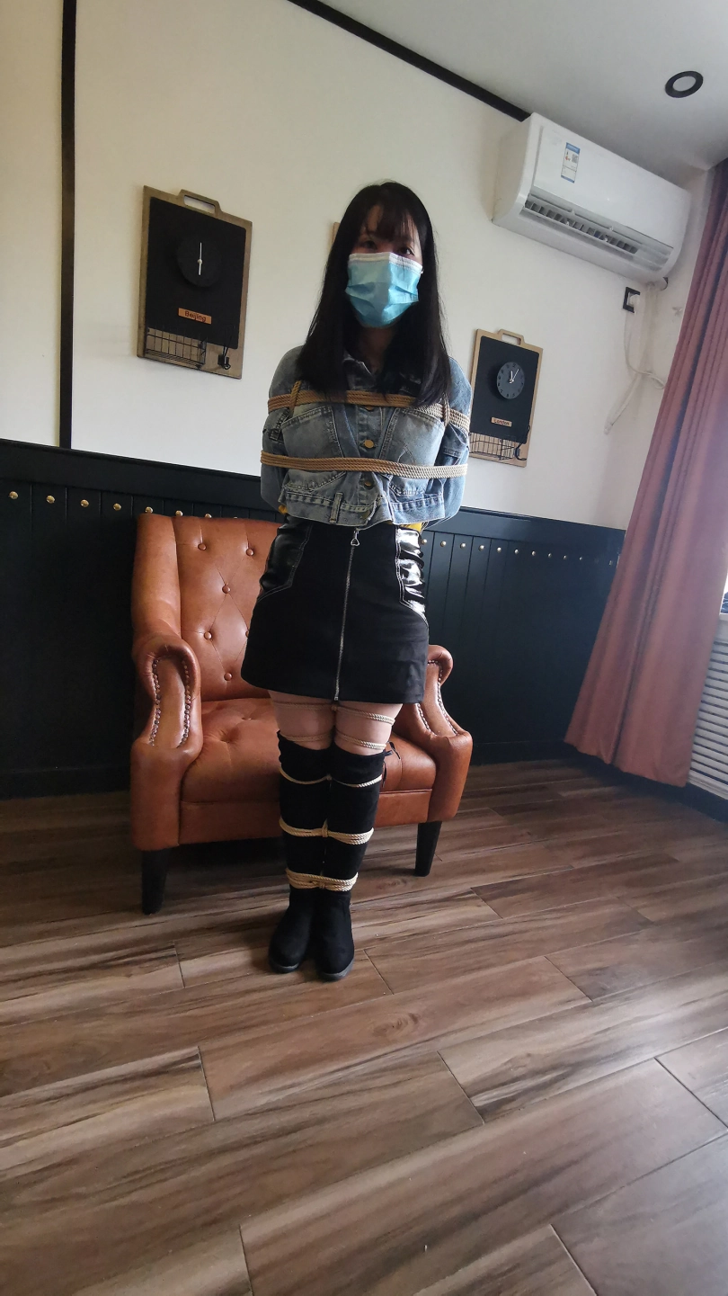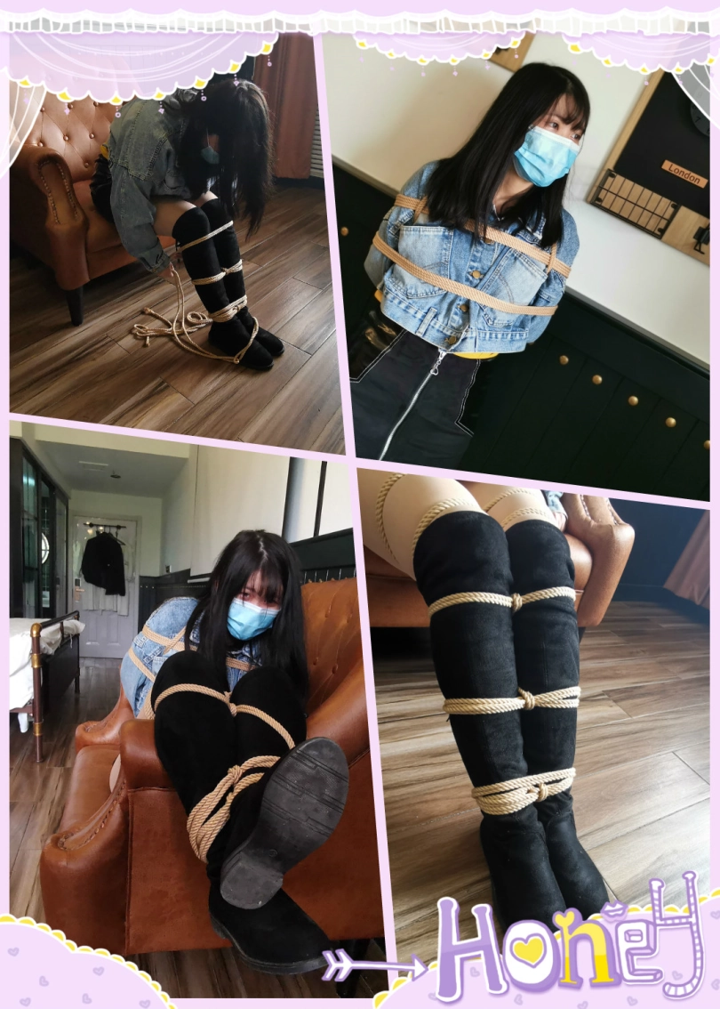 琳洛这丫头对捆绑比较感兴趣,平时没事就把自己的大腿绑上玩,这次让她自己把自己的腿捆绑上,上半身由我帮她捆绑好,坐在沙发上体验束缚挣扎的感觉。