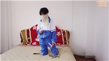 【xiao素素】学生服高邦白鞋 红条白袜 配红绳 捆绑单脚吊 脚尖顶地 和 大字床上捆绑 上下集