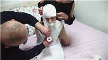 【逍遥】超稀有!《木乃伊姐妹》美女双人捆绑!被迷晕绷带捆绑!奋力挣扎无用 被包裹成黑白木乃伊!