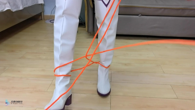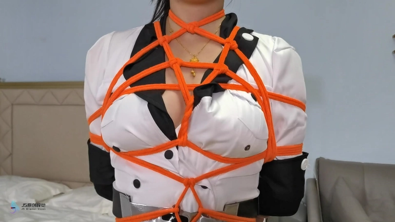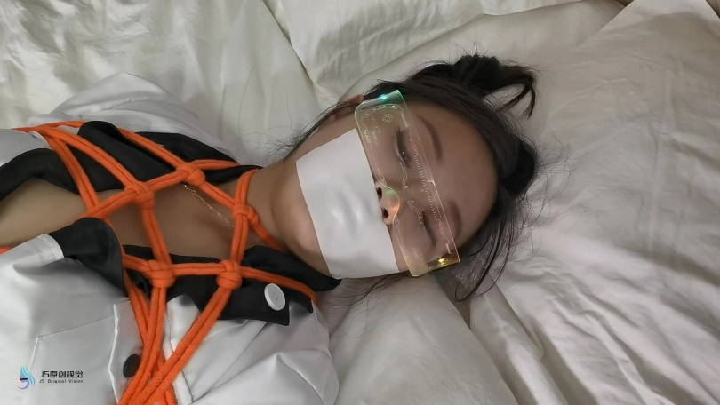 女搜查官进入一个房间调查最近的少女失踪案,发现屋里有大量女人的衣物和奇怪的道具。她觉得这因该就是坏人的窝点。这时她的电子眼镜发出警报,女官打开眼镜的扫描功能检查房间,就在这时房间窜出多条绳子缠绕住她的身体,就在女官惊讶的时候他的双臂被一股神秘力量向背后扭曲。最终她的身体被绳子紧紧的束缚着。她的嘴巴也被绳子塞进丝袜,并用胶布封嘴。女官被放倒在床上,绳子脱掉她的靴子,露出了里面的丝袜美脚。她的双脚也很快被绳子分开固定在床边。她的下面也被绳子固定着棒棒,强烈的刺激让女官发出享受的呜呜声。。。