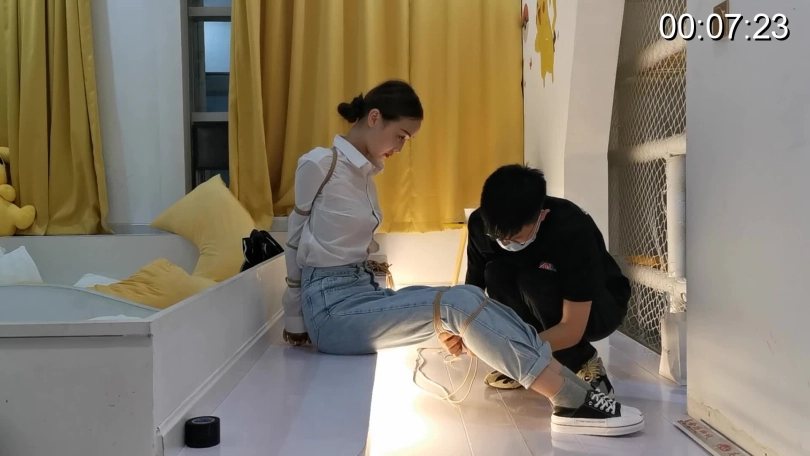 【绳师奥特曼】雨琪白衬衣牛仔裤捆绑挣扎
