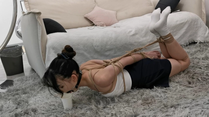 是大家喜爱的果果 果果身材很好 把果果驷马直臂捆绑起来  带上口球 口水止不住的留下来用杯子接口水看着非常过瘾哦 口水哗哗流一地 感谢绳师和模特的辛苦拍摄 在下集会有吊绑 白袜 口球 流口水等等元素。