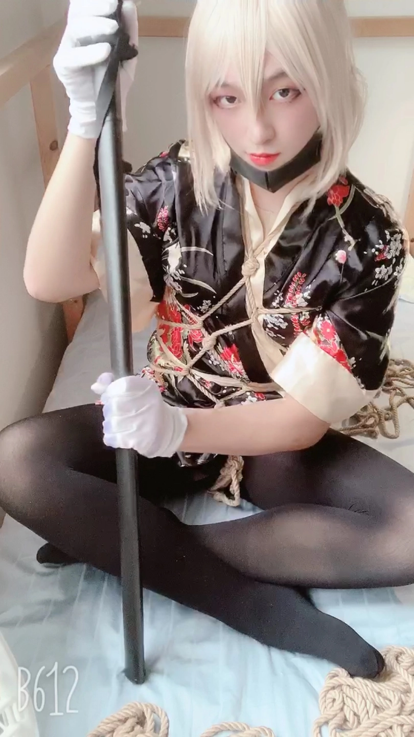 【sAber总司和服】这次是可爱的总司呀 边捆绑边卖萌 自缚M腿+海老缚+口球+TD黑裤袜+和服 再看我就砍你哼