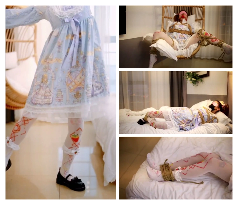 这里是荷仙美荷依依,裙子是好裙子,女孩是好女孩,但绳子就不是好绳子咯,绑在一个刚成年的lolita美少女身上的体验,依依每次被调教之前,必须要跳一段舞才行,不然会生气的哦,依依不知道双脚被绑着,并且脚心夹着td是什么感觉,今天就让你尝试一下哦,果然一碰到就赶紧叫着缩回去了小脚,td放到[不可描述]的时候,依依身体颤抖的不行