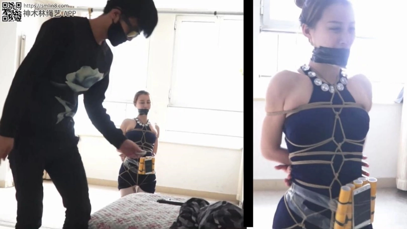 女警被匪徒挟持在怀里,全身被缚,连高跟鞋也被捆绑在一起只嘴里被塞入丝袜,用胶布绕着脑袋缠绕了好几圈,与警方谈判破裂! 女警被施毒计,身绑炸弹,但炸弹开关放在她够不到的地方,门也打不开,吓的美女都失禁了,如同狗一样惊慌失措的在地上爬行! 最后女警结果如何,我们拭目以待!!