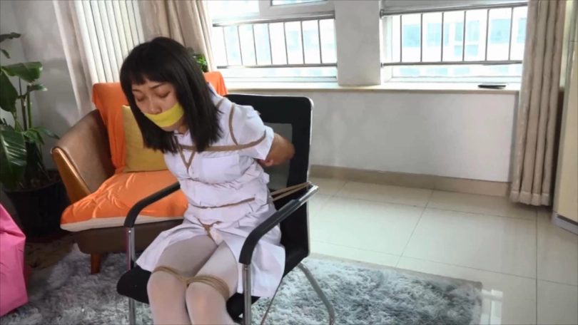 日式并腿紧缚,膝盖上下捆绑,白丝护士装。躺着和固定在椅子上 40分钟