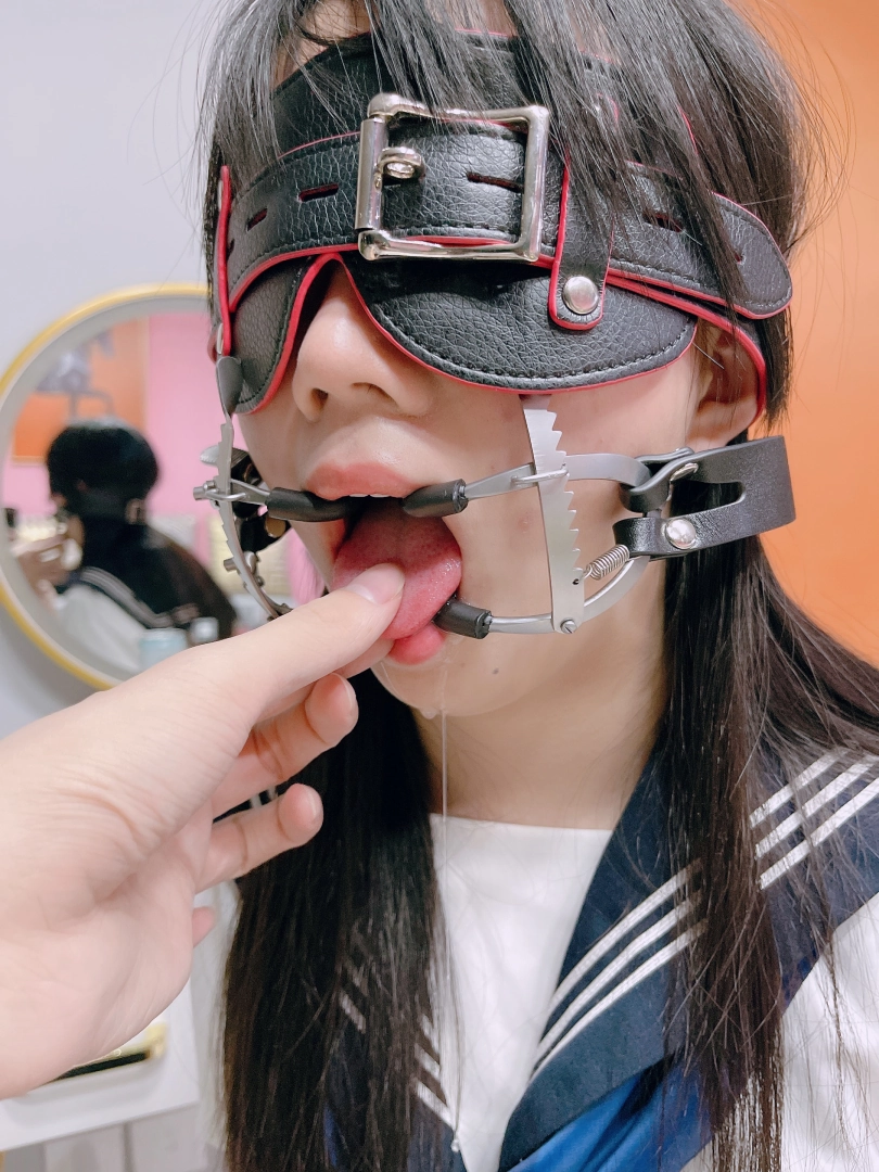 是茶茶小姐姐自拍的呢~主要是测试茶茶佩戴金属扩口器口枷的流口水情况,然后用手指玩弄茶茶可爱的小舌头~喜欢金属口枷和流口水的朋友们不要错过哦。