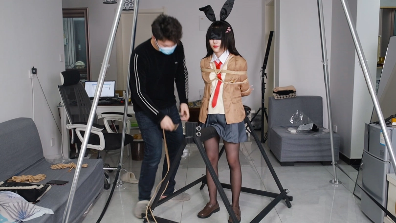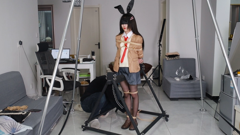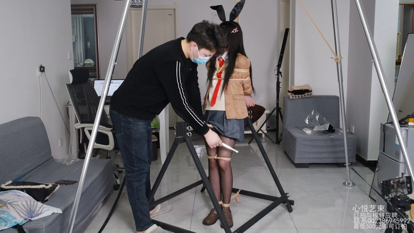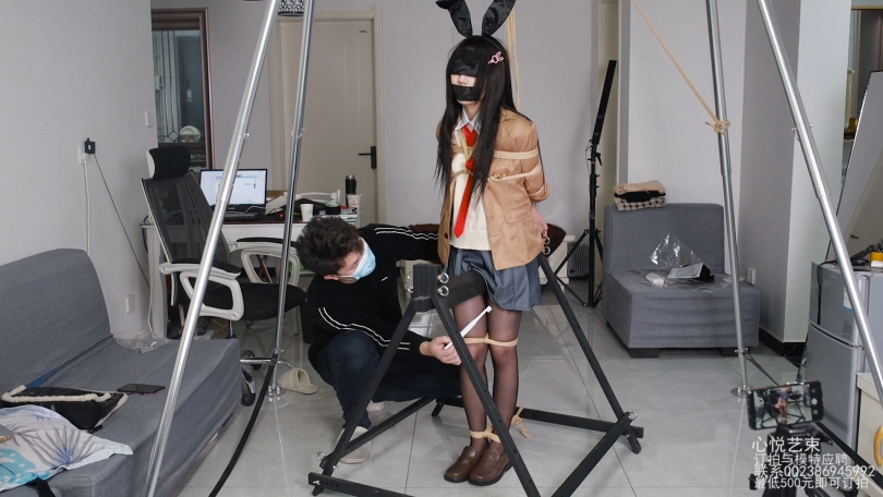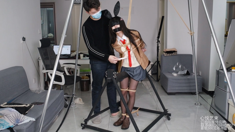【心悦艺束】新妹子梦泪的麻衣学姐COS,绑在铁架上电动牙刷骚扰