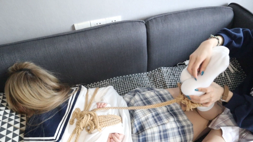 一天一对姐妹安蕊和安诺在家,安蕊给安诺做了好吃的,安蕊把饼递给妹妹说道,这是姐姐精心为你做的饼快吃吧,安诺吃了一口说道啊啊啊,好难吃我才不吃呢,安蕊生气了怎么会难吃呢,说完一把把安诺拉到沙发上,把自己可爱的但又 不吃饼的妹妹绑了个结结实实,为什么就是不吃呢,因为实在是太难吃了啦!安诺被绑着,委屈的对姐姐安蕊说拿给我们家小猫咪吃吧,不行!咱们家小猫咪有猫粮,我就要给你吃,啊啊太难吃了,姐姐我错了, 你听话点吗为什么这一次就是不愿意呢,安诺说我错了我错了,安蕊一听说你错在哪里啦,呜呜呜哪里都错了,啊你居然敢敷衍我!姐姐一听就生气了,急忙把魔爪伸向自己被绑着的可怜的妹妹身上,那小鞭子挠安诺的白棉袜小玉足,啊啊啊啊,我会认真的认错的,,我太难了,,安蕊笑着说,你现在呢,是觉得当我的妹妹难呢,还是吃饼太难了,安诺委屈的回答道哎 吃饼太难了,安蕊生气的说,姐姐辛辛苦苦做的,你为什么说难吃,!!肯定是原料的问题呀,