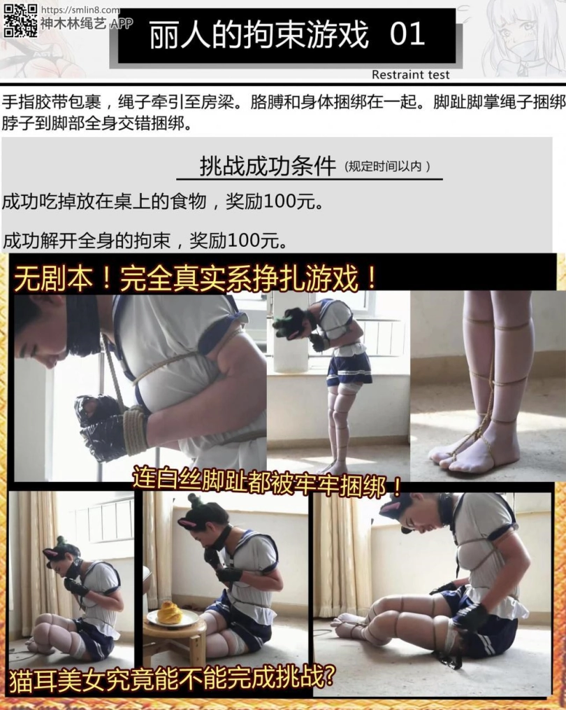 【逍遥】丽人的拘束游戏-1 !!超有趣的真实系美女挣扎游戏!猫耳水手服白丝!连白丝脚趾都捆绑在一起的拘束!还要求在拘束的情况下做各种游戏~